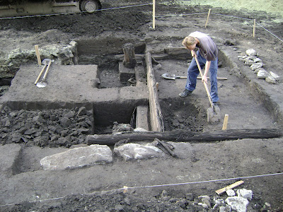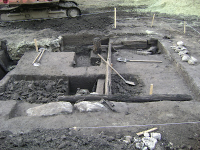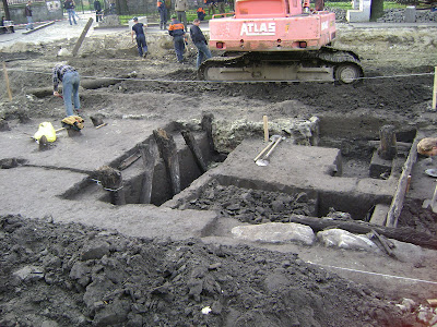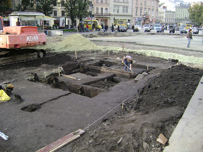 Вже котрий день на площі Галицькій проводяться ремонтні роботи по прекладенню бруківки. Одночасно з Тракторами та бульдозерами там працює група археологів, котрі розкопують якусь деревяну споруду. Цікаво, певно разів надцять проходив повз неї а сьогодні вирішив то все діло зафотографувати. А тепер питання може хтось чув чи читав щось чи є яка-небудь інформація що саме знайшли і відкопують археологи. Може хтось по фото здогадається